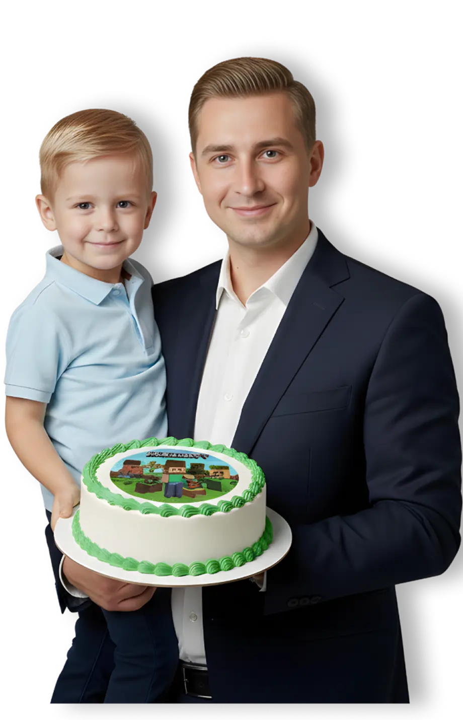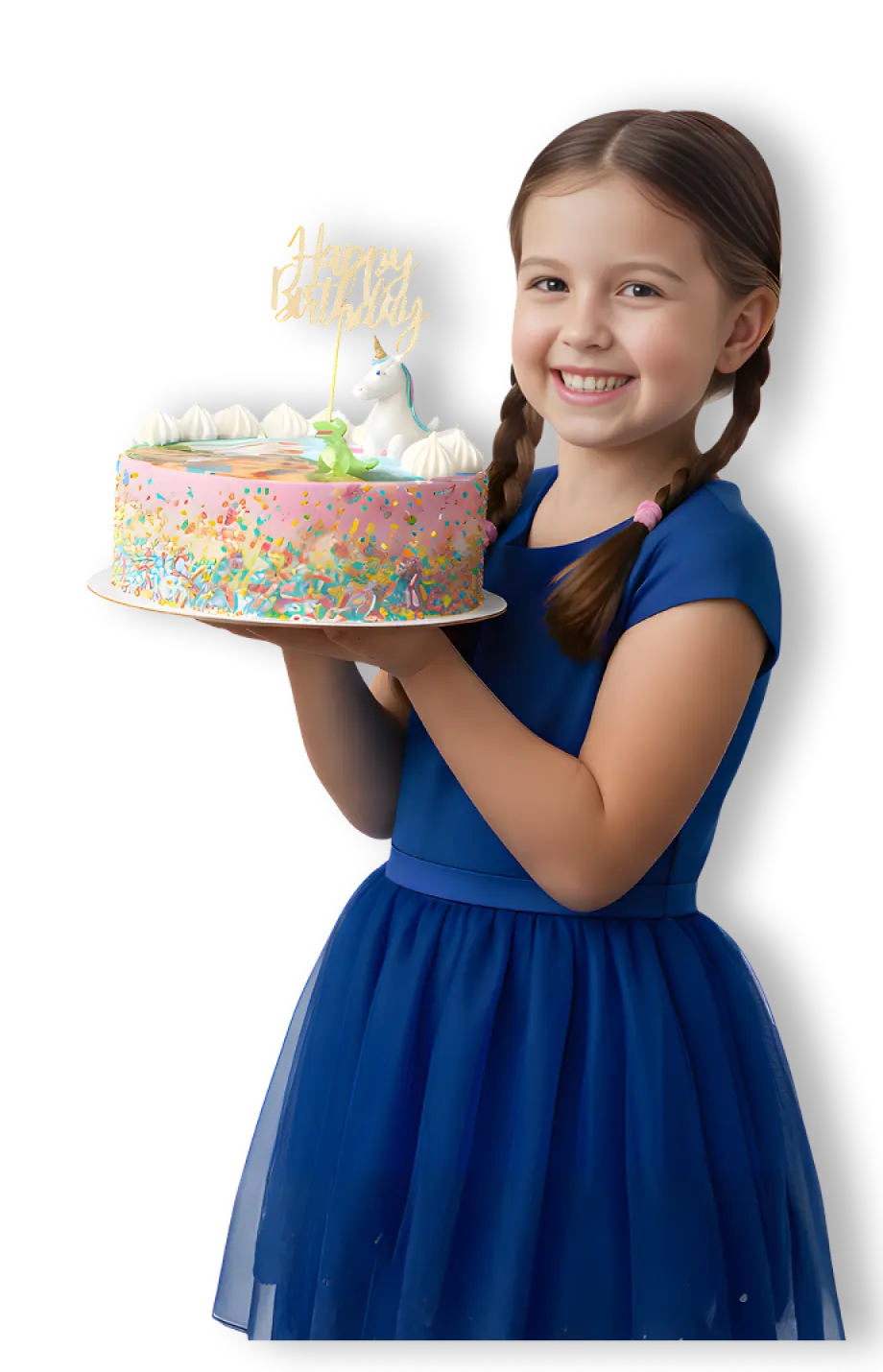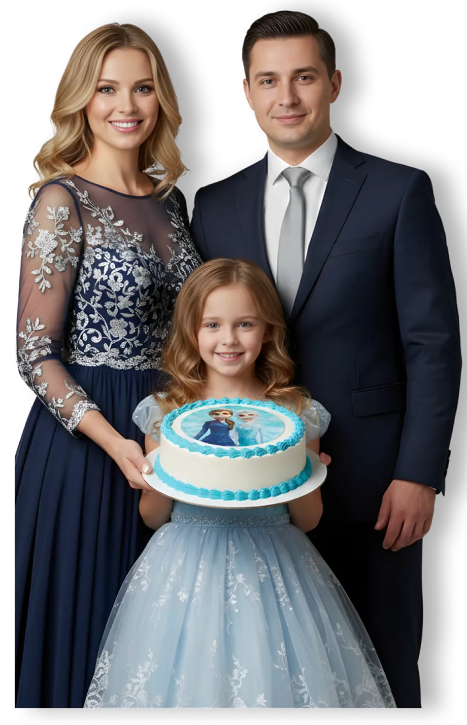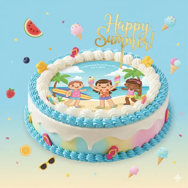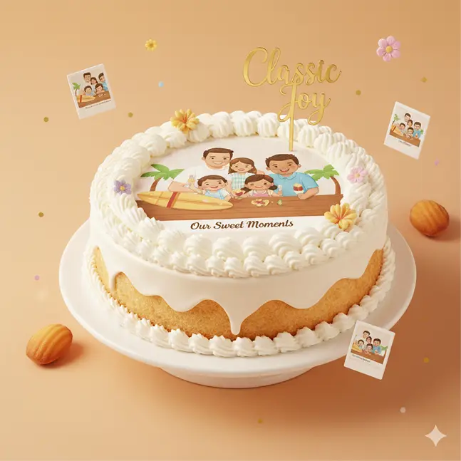 Our signature ice cream cake combines creamy vanilla and chocolate ice cream layers with your custom photo beautifully printed on premium edible paper. Each cake is handcrafted by our master pastry chefs using only the finest ingredients.